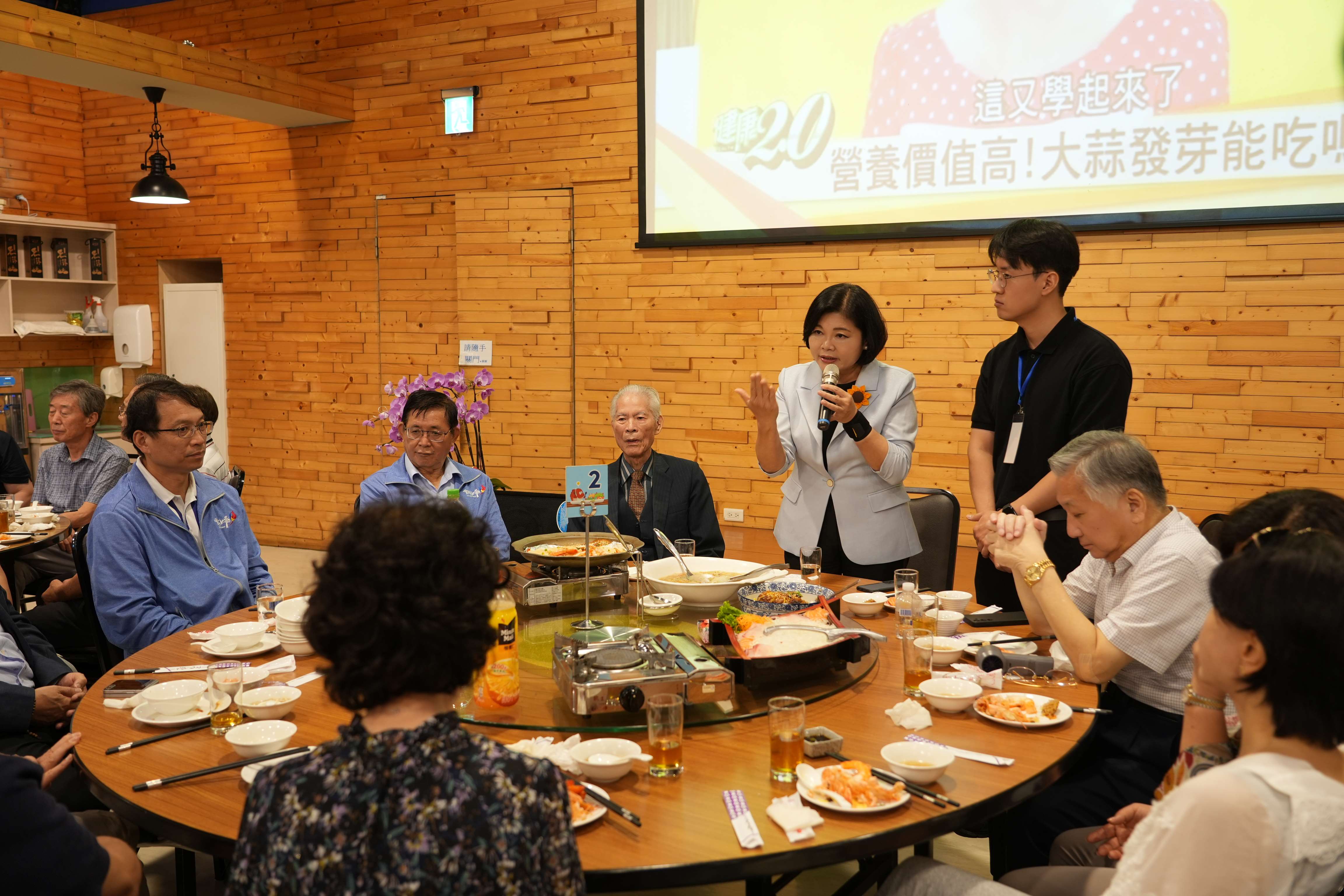 縣長張麗善致贈台灣咖啡給金潤培理事長等參訪團成員。張縣長表示,雲林在地方創生同樣成果豐碩,其中「宏昇芽菜」獲選為全台十大傑出神農獎之一,更在「創業歸故里」計畫中勇奪亞軍,展現地方農業創新與地方創生成果。