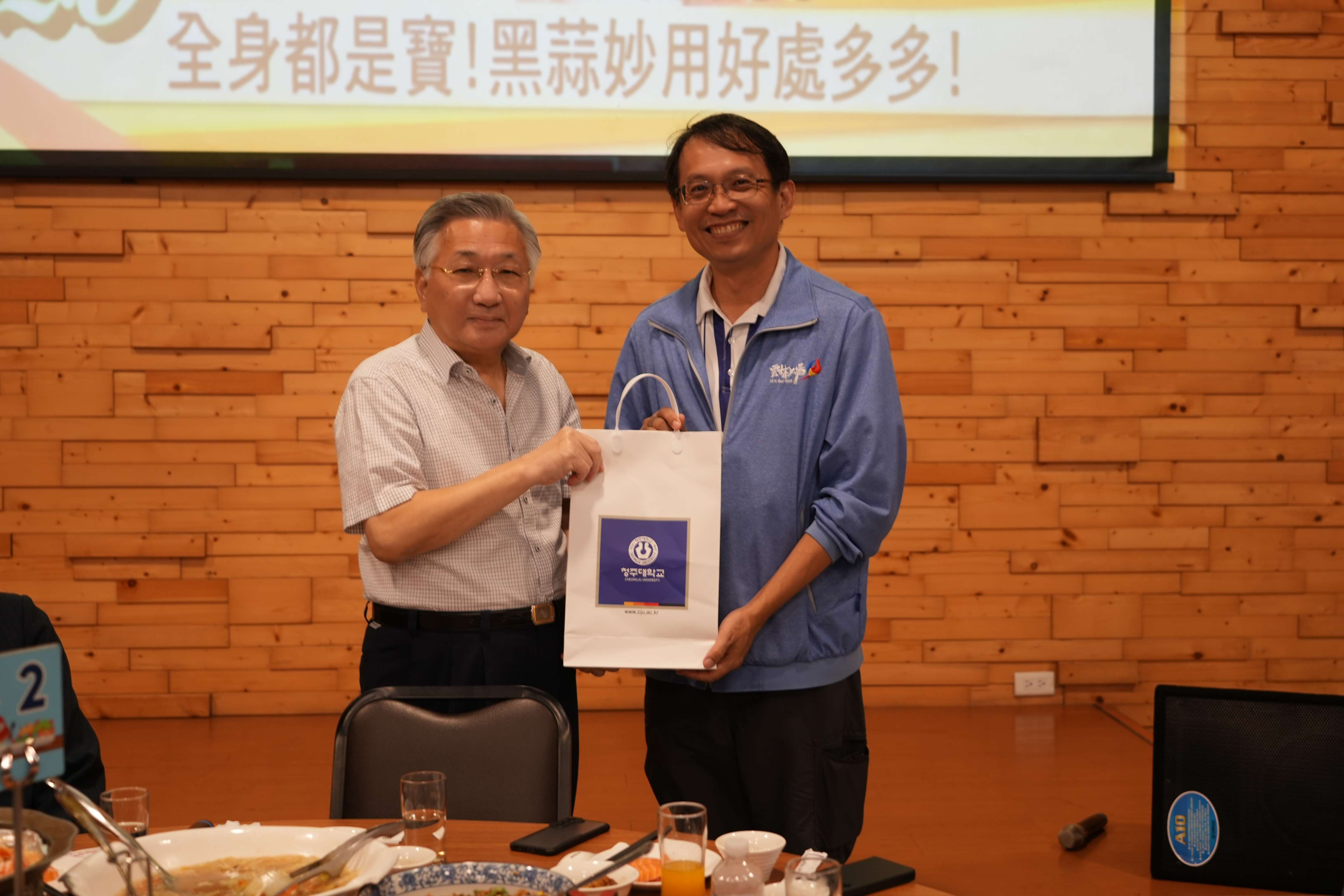 中韓文化基金會董事長林秋山回贈禮物感謝縣府精心安排參訪行程。